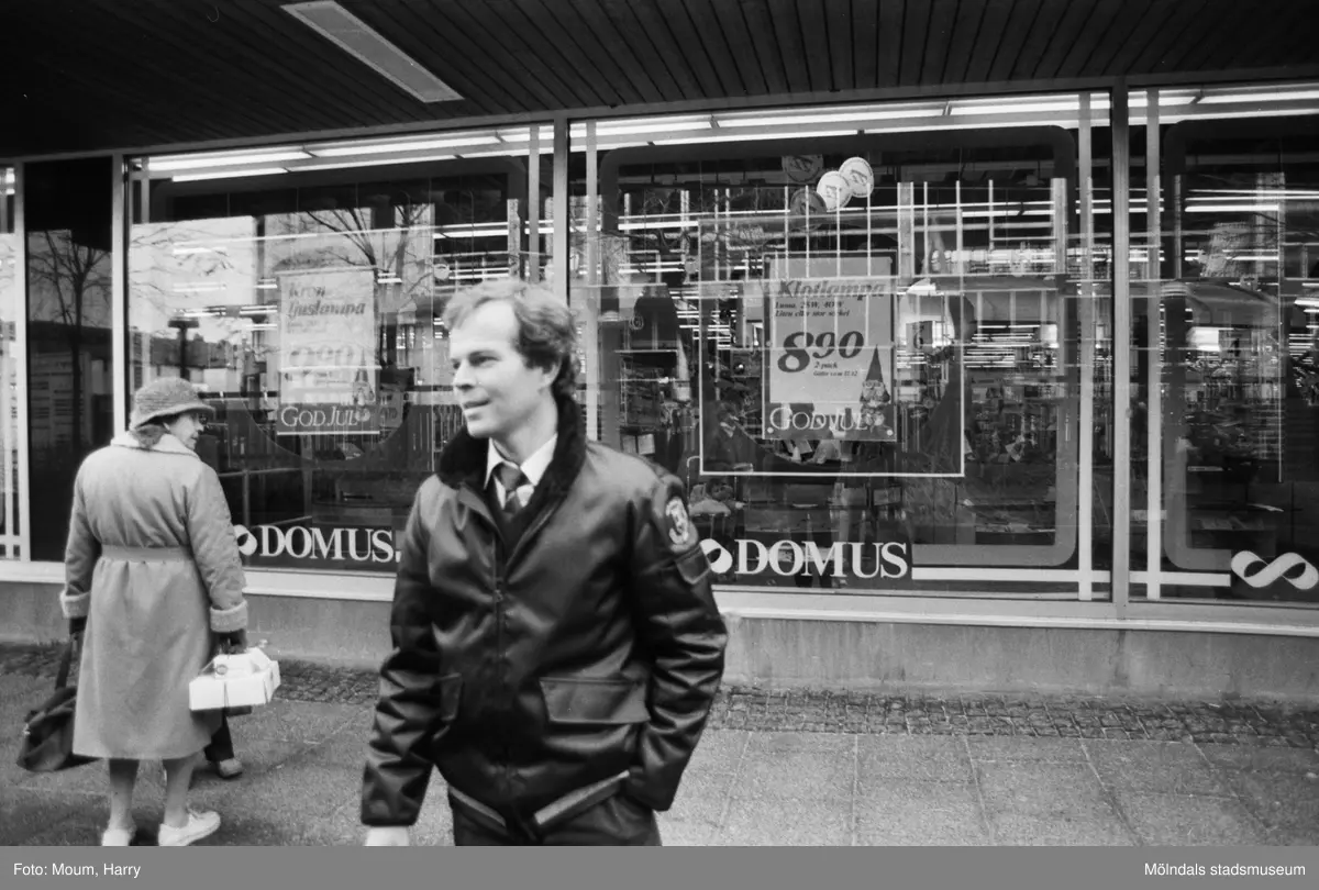 Thomas Natanaelsson framför Domus vid Frölundagatan i Mölndals centrum, år 1983.