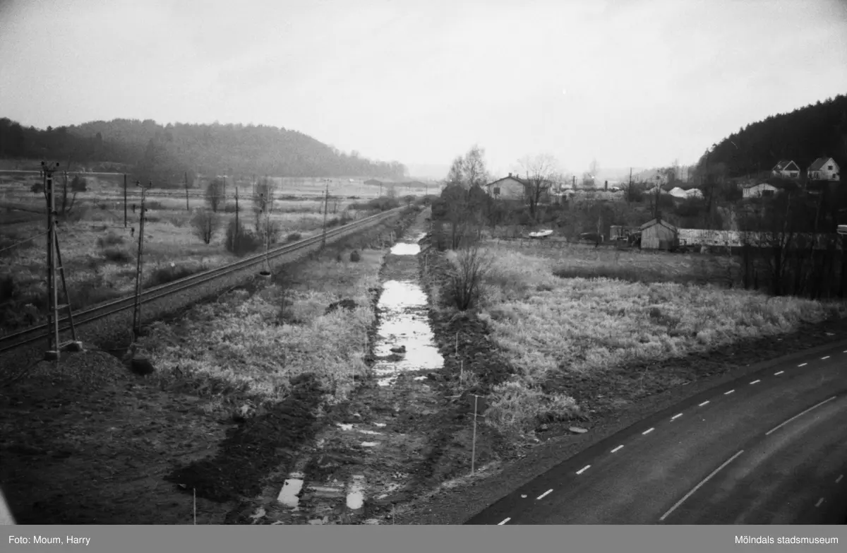 Byggnation av GCM-väg mellan Rävekärr och Kållered, år 1984. "Längs järnvägen byggs nu den nya GCM-vägen mellan Rävekärr och Kållered."