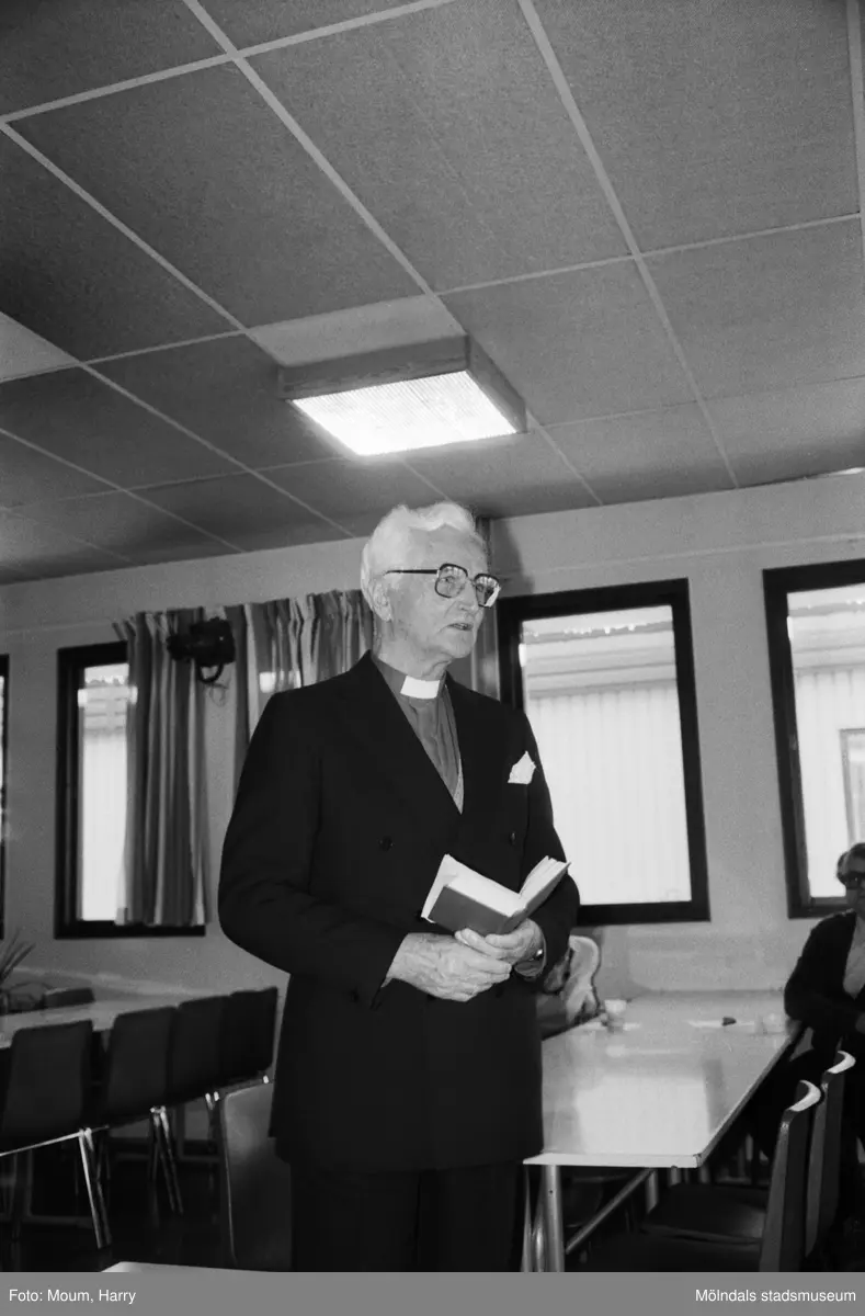 Gudstjänst i Rävekärrsskolan i samband med att man tar första spadtaget till Fågelbergskyrkan i Rävekärr, år 1984.