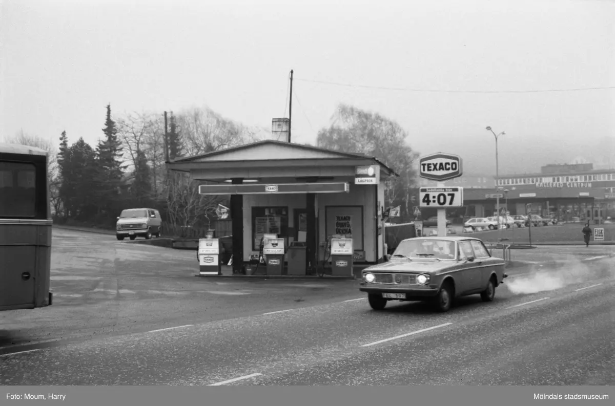Bensinstationen Texaco i korsningen Gamla Riksvägen-Streteredsvägen i Kållered, år 1984.