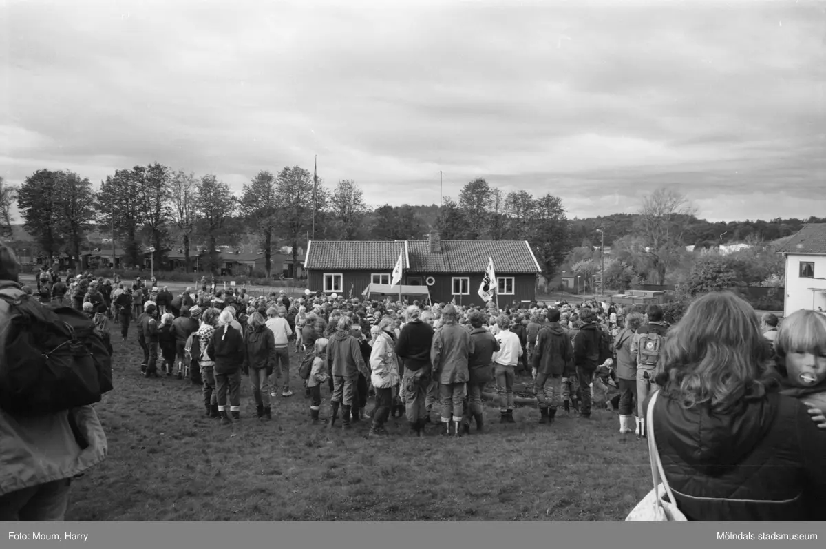 Annestorpsdalens scoutkår anordnar distriktstävlingar från scoutgården vid Konditorivägen i Lindome, år 1983.