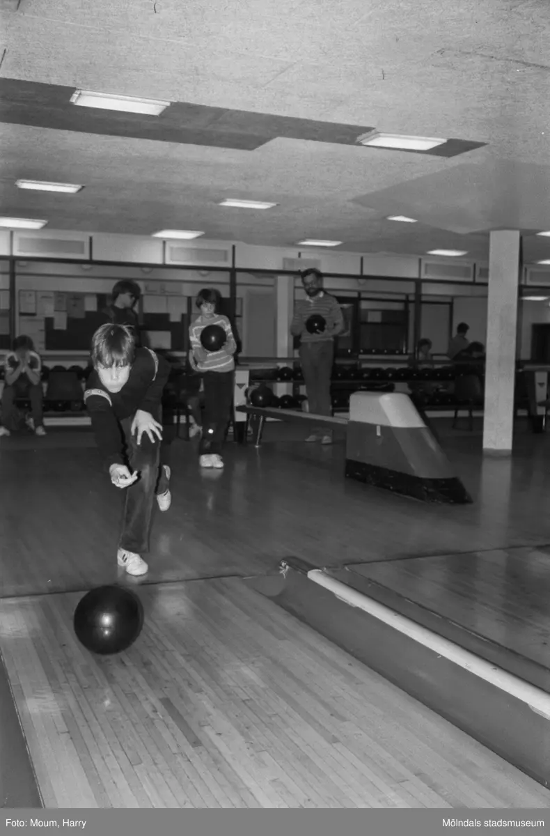 Bowlingens dag arrangeras i Kållereds bowlinghall, år 1984. "Richard Sjöstedt, Kållered."