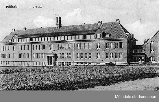 Vykort på Kvarnbyskolan, då kallad Centralskolan (Nya Skolan). Skolan stod färdig 1925.