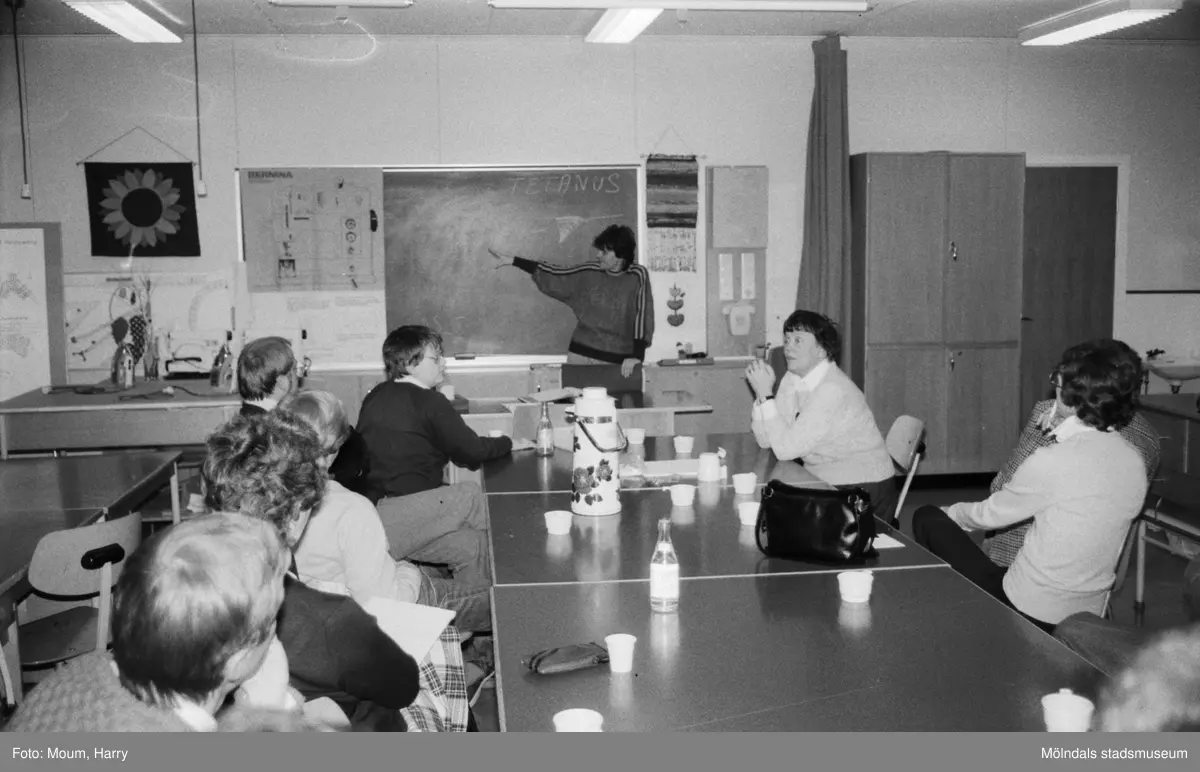 Kållereds Röda Kors arrangerar livräddningskurs i Hallenskolan, Kållered, år 1984.