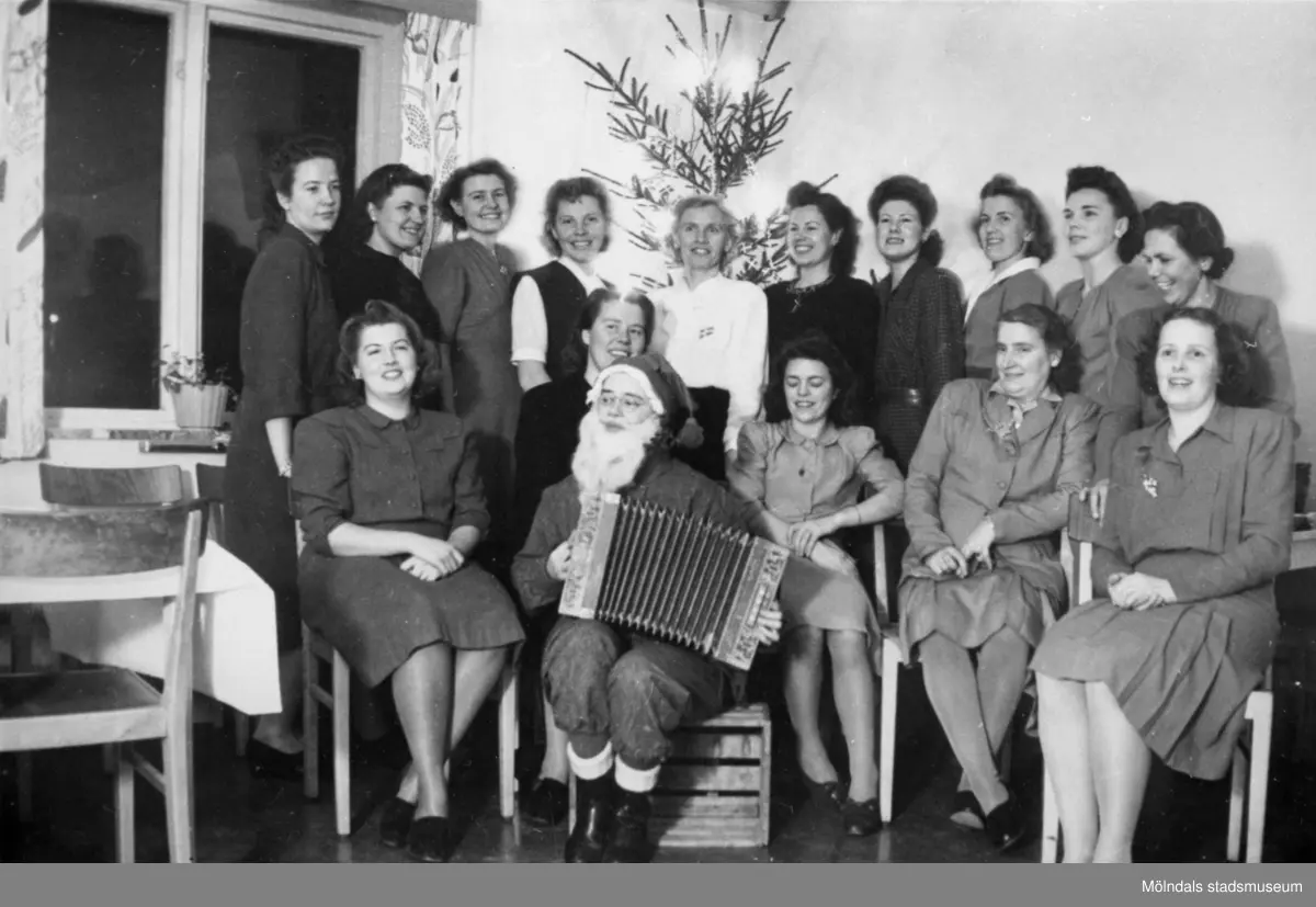 Luciafest för Eiserpersonal under 1950-talet. Tomten bjöd på dragspelsunderhållning.