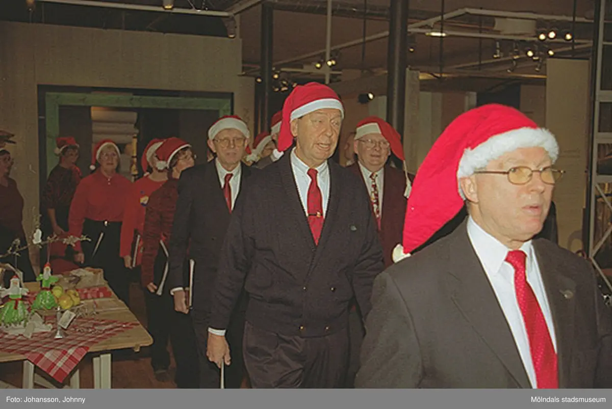 Julklädd kör sjunger på museet