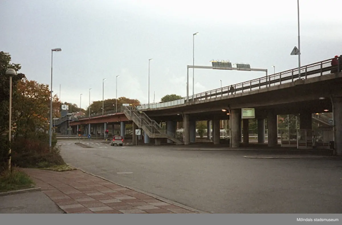 Bron österut, sedd från Broplatsen. Mölndalsbro i dag - ett skolpedagogiskt dokumentationsprojekt på Mölndals museum under oktober 1996. 1996_1338-1356 är gjorda av högstadieelever från Åbyskolan 8A, grupp 6. Se även 1996_0913-0940, gruppbilder på klasserna 1996_1382-1405 och bilder från den färdiga utställningen 1996_1358-1381.