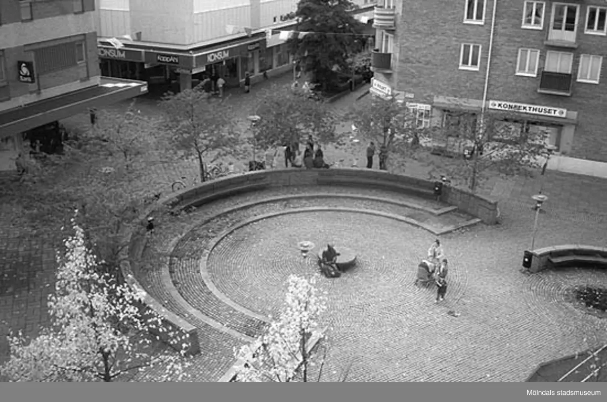 Alberts torg sett från ovan. Mölndalsbro i dag - ett skolpedagogiskt dokumentationsprojekt på Mölndals museum under oktober 1996. 1996_0950-0965 är gjorda av högstadieelever från Kvarnbyskolan 9A, grupp 3. Se även 1996_0913-0940, gruppbilder på klasserna 1996_1382-1405 samt bilder från den färdiga utställningen 1996_1358-1381.