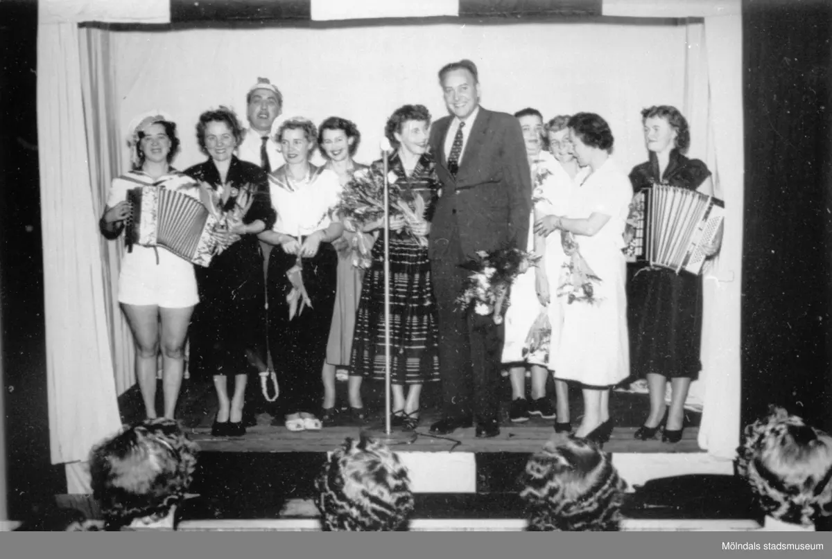 Eisers personal "revyspelarna" står uppställda för avslut. 1950-tal.