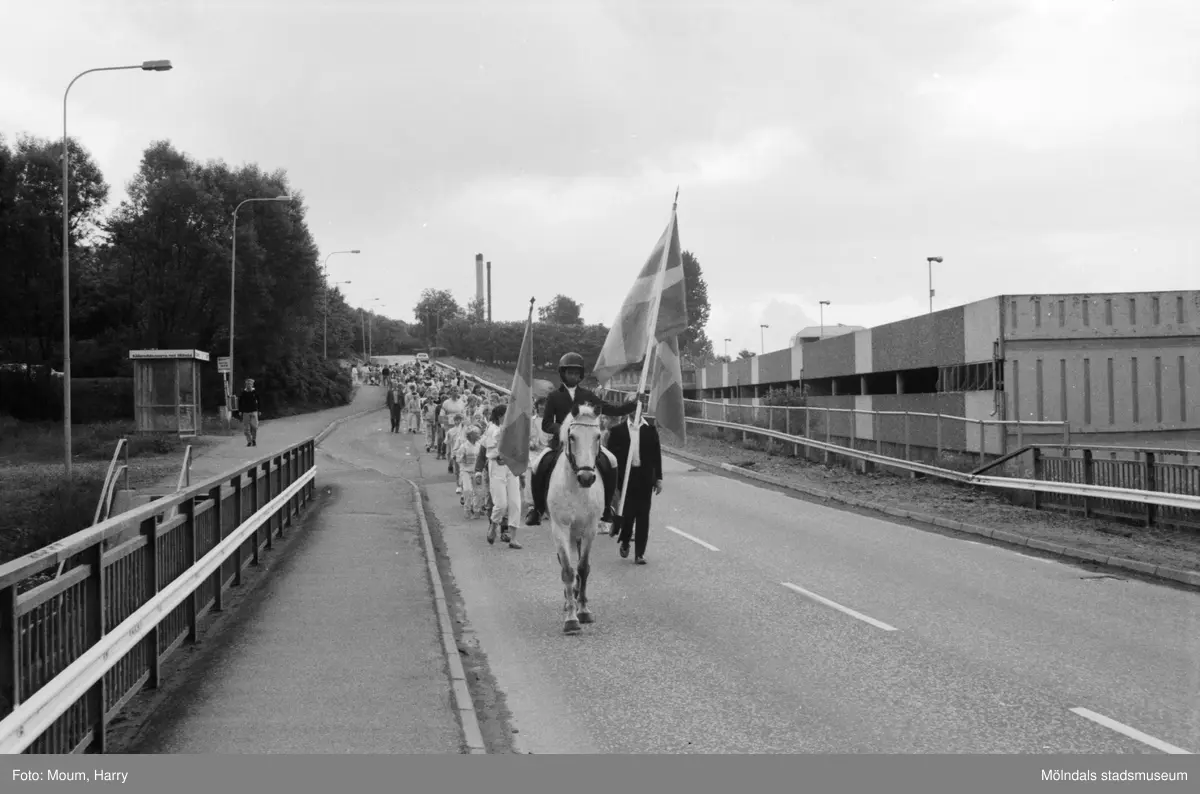 Nationaldagsfirande i Kållered, år 1985. Festtåg på Streteredsvägen.