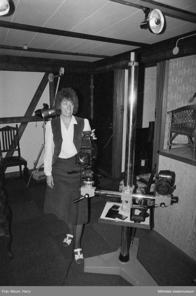 Wally Holmberg har öppnat fotoatelje i sin villa vid Gamla Riksvägen i Kållered, år 1983. "Wally Holmberg har öppnat fotoateljé i Kållered."