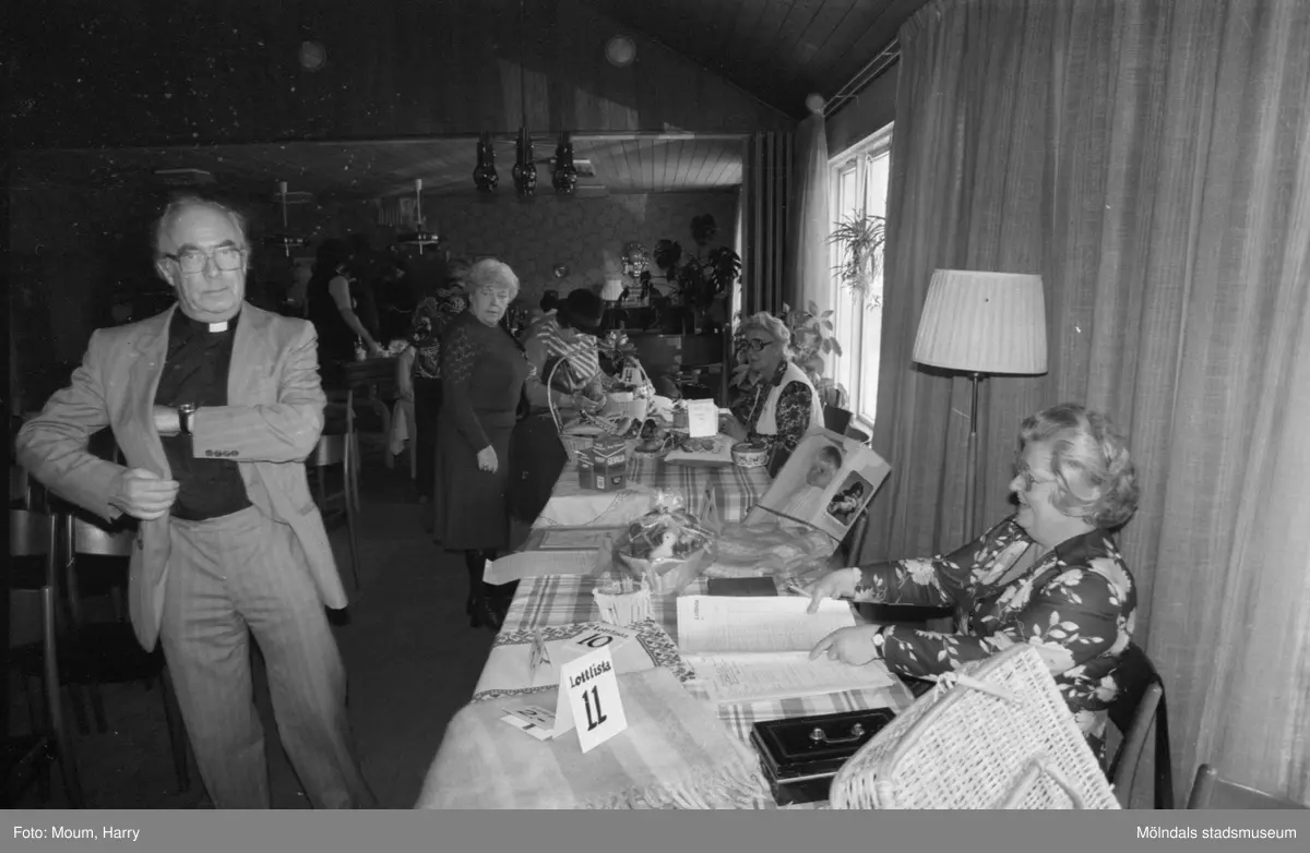 Titel: Kållereds kyrkliga arbetskrets har sin årliga vårbasar i Kållereds församlingshem, år 1984. För mer information om bilden se under tilläggsinformation.