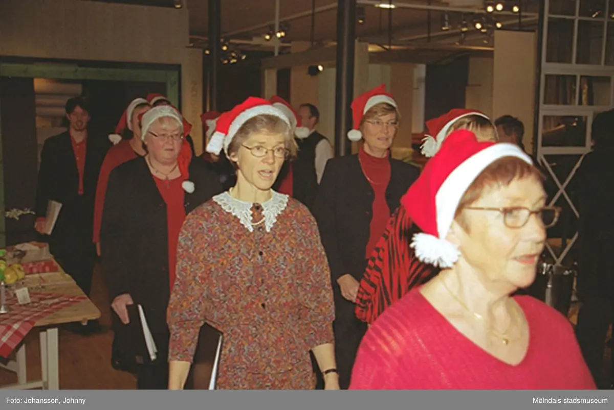 Julklädd kör sjunger på museet