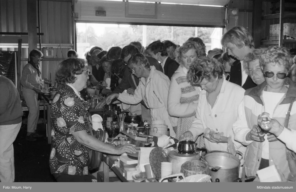 Titel: Lions anordnar loppmarknad i Lindome, år 1984. För mer information om bilden se under tilläggsinformation.