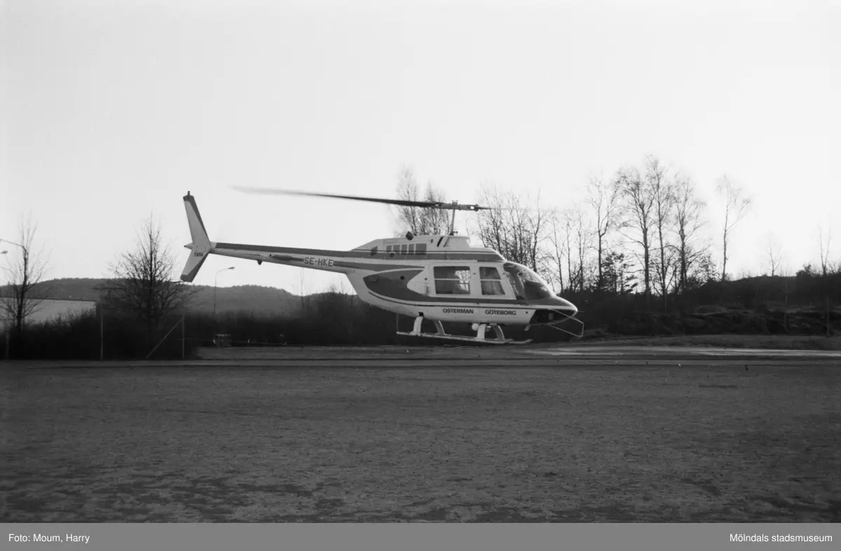 Lindome centrum firar 10-årsjubileum, år 1983. Helikopteruppstigning.