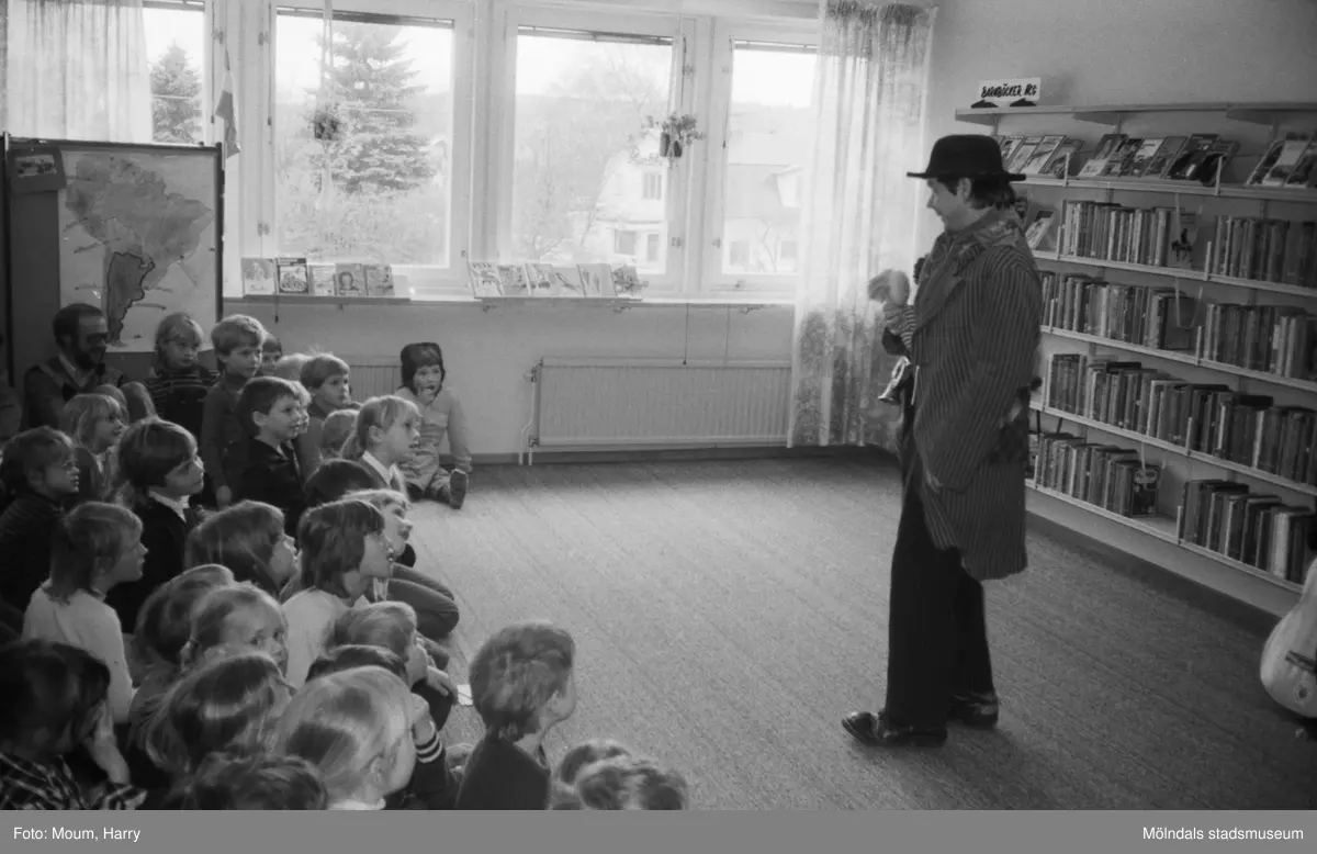 Jörgen Lantz underhåller barn på Kållereds bibliotek, år 1983.