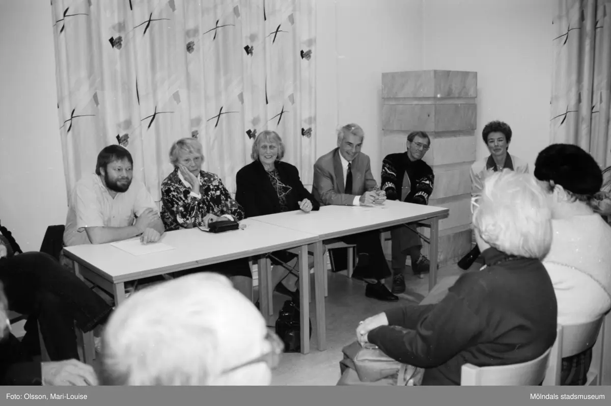 Familjesöndag, 1992 på Mölndals museum, i samband med utställningen "Gammalt skräp". Man hade barnverkstad med käpphästtillverkning, mannekänguppvisning samt paneldiskussion om "samlande". Ulla Hasselqvist sitter längst till höger.