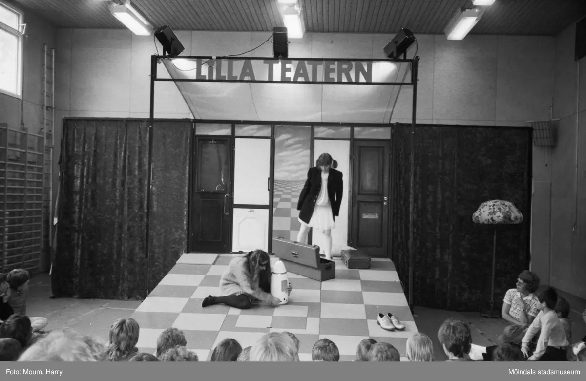Lilla Teatern har föreställning på Brattåsskolan i Kållered, år 1983. "Krig eller fred handlade den pjäs om som spelades i Brattåsskolan."