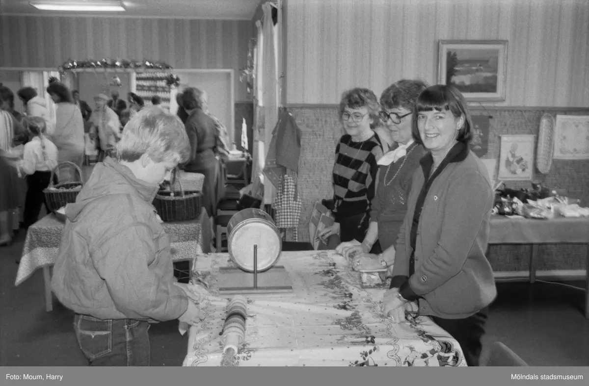 Titel: Röda Korsets julbasar i gamla kommunalhuset i Kållered, år 1984. För mer information om bilden se under tilläggsinformation.