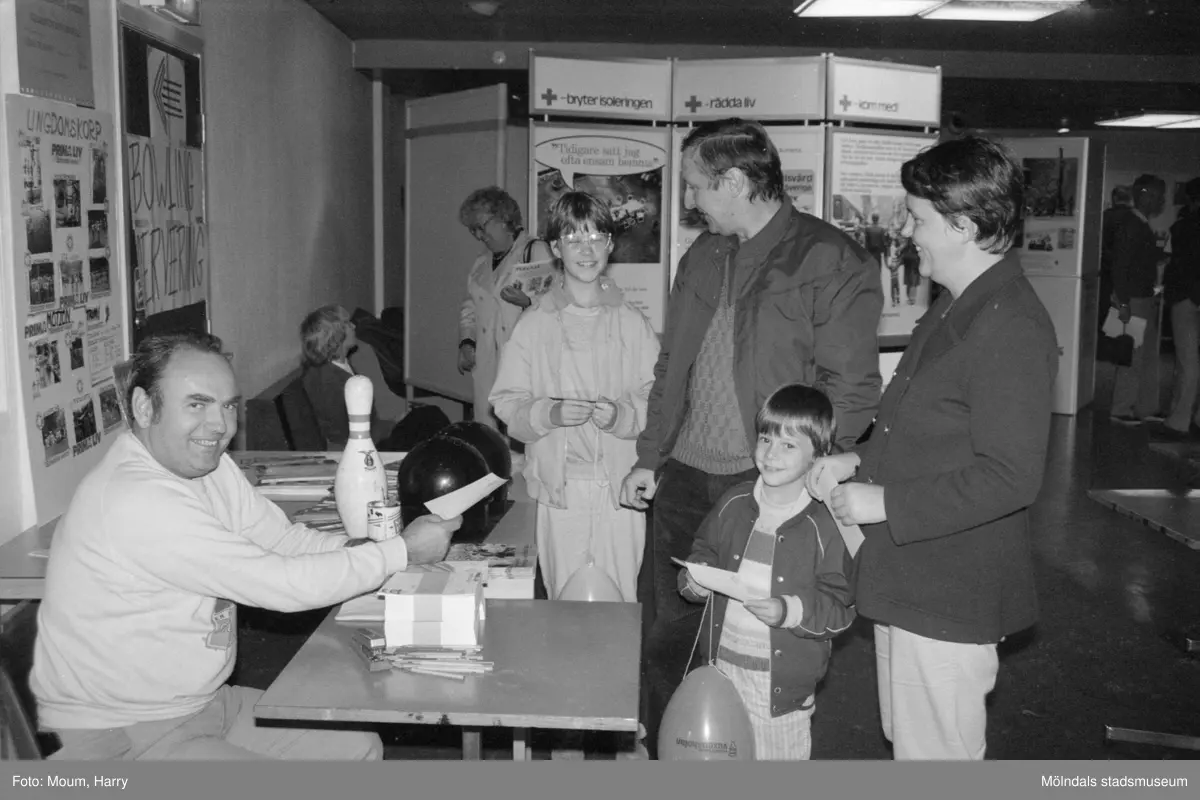 Mölndals-korpen anordnar poängpromenad i samband med Föreningarna dag i Kållered, år 1984. "Familjen Landström lämnar in startkorten till Karl Schneider."
