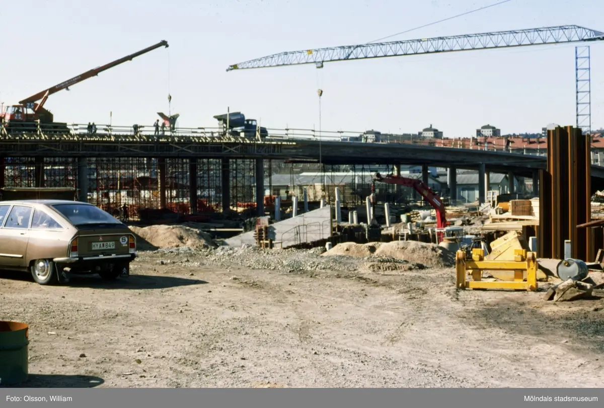 Nybygge av bro över Lackarebäcksmotet E6/E20, okänt årtal. Bron går mellan Järnvägsgatan - Norra/Södra Ågatan.