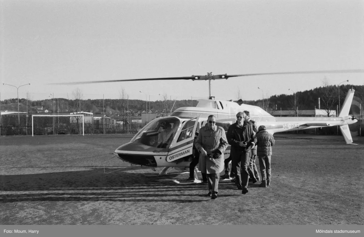Lindome centrum firar 10-årsjubileum, år 1983. Helikopteruppstigning.