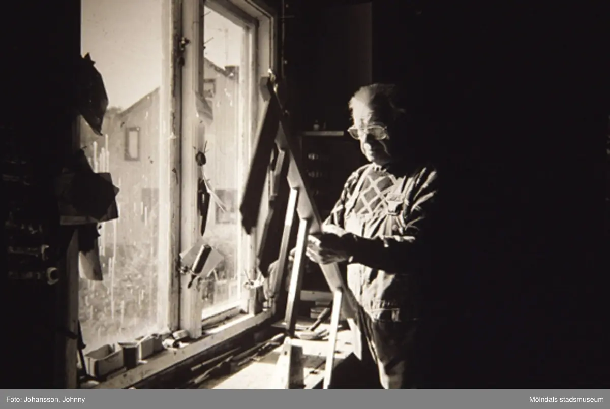 Porträtt av en man. Utställning av Ballbomöbler på Mölndals museum, Norra Forsåkersgatan 19 i Mölndal. Utställningen pågick 1997-11-30 - 1998-03-29.