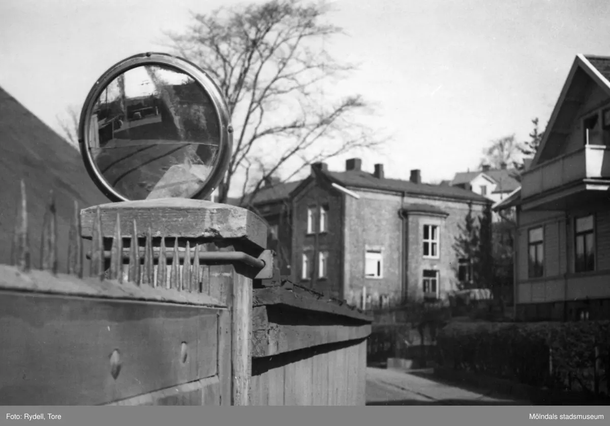 Forsåkersgatan i Forsåker, Mölndal, i riktning mot norr på 1960-talet. I bakgrunden ses huset Forsåkersgatan 19. Byggnaden har inrymt alltifrån sjukhus och polisstation till Mölndals museum.