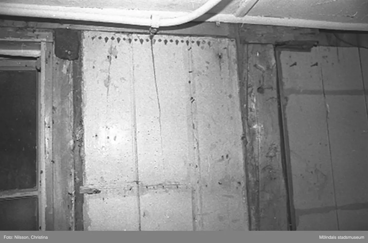 Kvarnfallet 31 i Grevedämmet, hösten 1994. Interiör i fabriksbyggnad. Byggnadsdetaljer: Halvt fönster och ledning i taket m.m.
