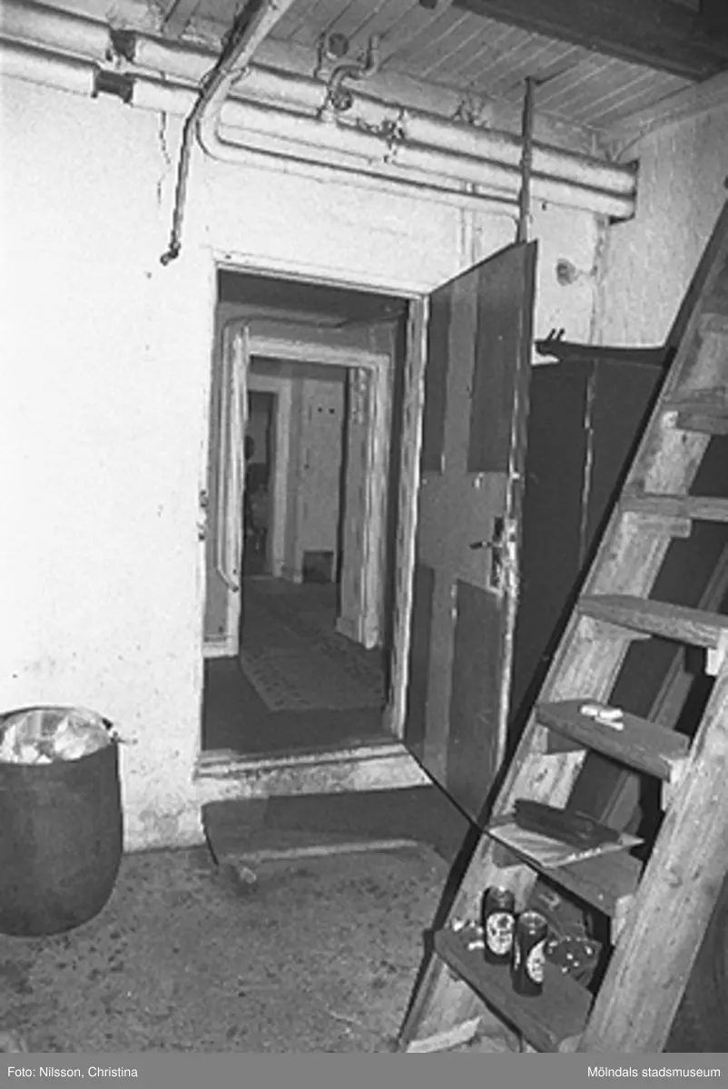 Kvarnfallet 31 i Grevedämmet, hösten 1994. Interiör i fabriksbyggnad. Byggnadsdetaljer: Dörr, stege, ledning i taket m.m.