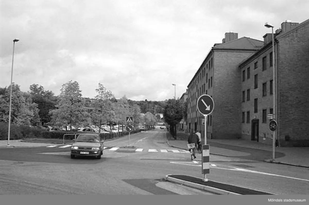 Tempelgatan. Mölndalsbro i dag - ett skolpedagogiskt dokumentationsprojekt på Mölndals museum under oktober 1996. 1996_0913-0930 gjorda av högstadieelever från Kvarnbyskolan 9A, grupp 1. Se även gruppbilder på klasserna 1996_1382-1405 och bilder från den färdiga utställningen 1996_1358-1381.