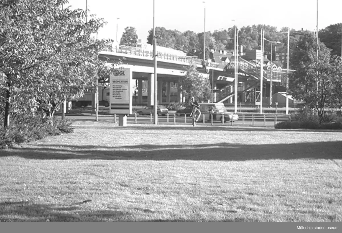 Bron åt nordost. Mölndalsbro i dag - ett skolpedagogiskt dokumentationsprojekt på Mölndals museum under oktober 1996. 1996_1079-1097 är gjorda av högstadieelever från Kvarnbyskolan 9C, grupp 4. Se även 1996_0913-0940, gruppbilder på klasserna 1996_1382-1405 samt bilder från den färdiga utställningen 1996_1358-1381.