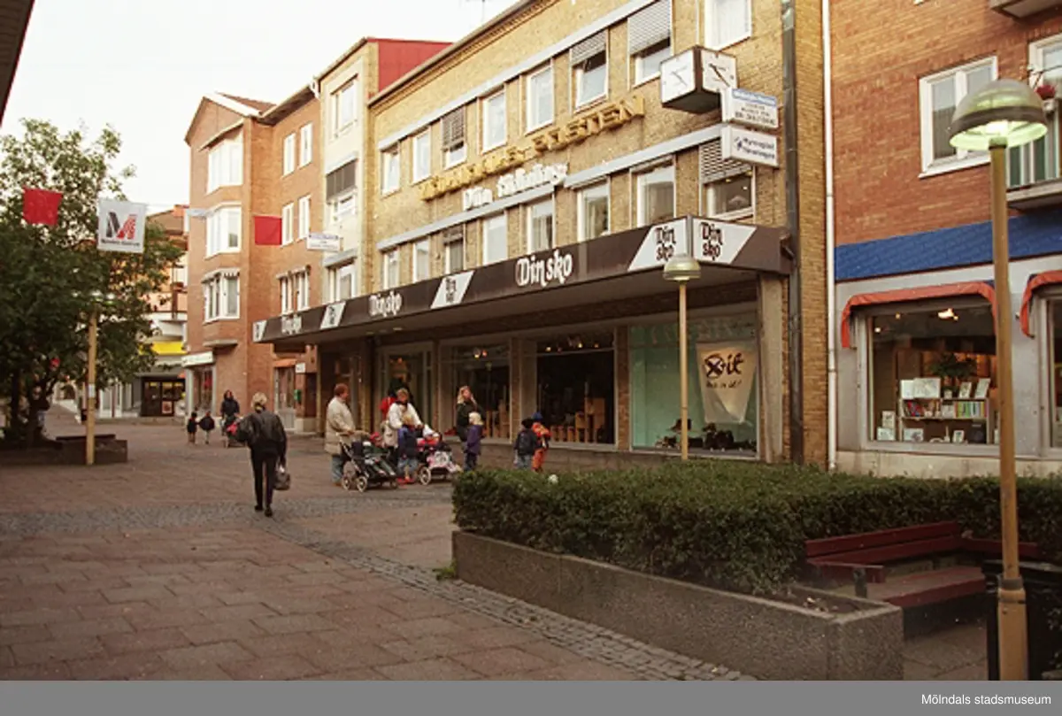 Mölndals-Posten på Brogatan. Mölndalsbro i dag - ett skolpedagogiskt dokumentationsprojekt på Mölndals museum under oktober 1996. 1996_1264-1282 är gjorda av högstadieelever från Åbyskolan 8A, grupp 2. Se även 1996_0913-0940, gruppbilder på klasserna 1996_1382-1405 och bilder från den färdiga utställningen 1996_1358-1381.