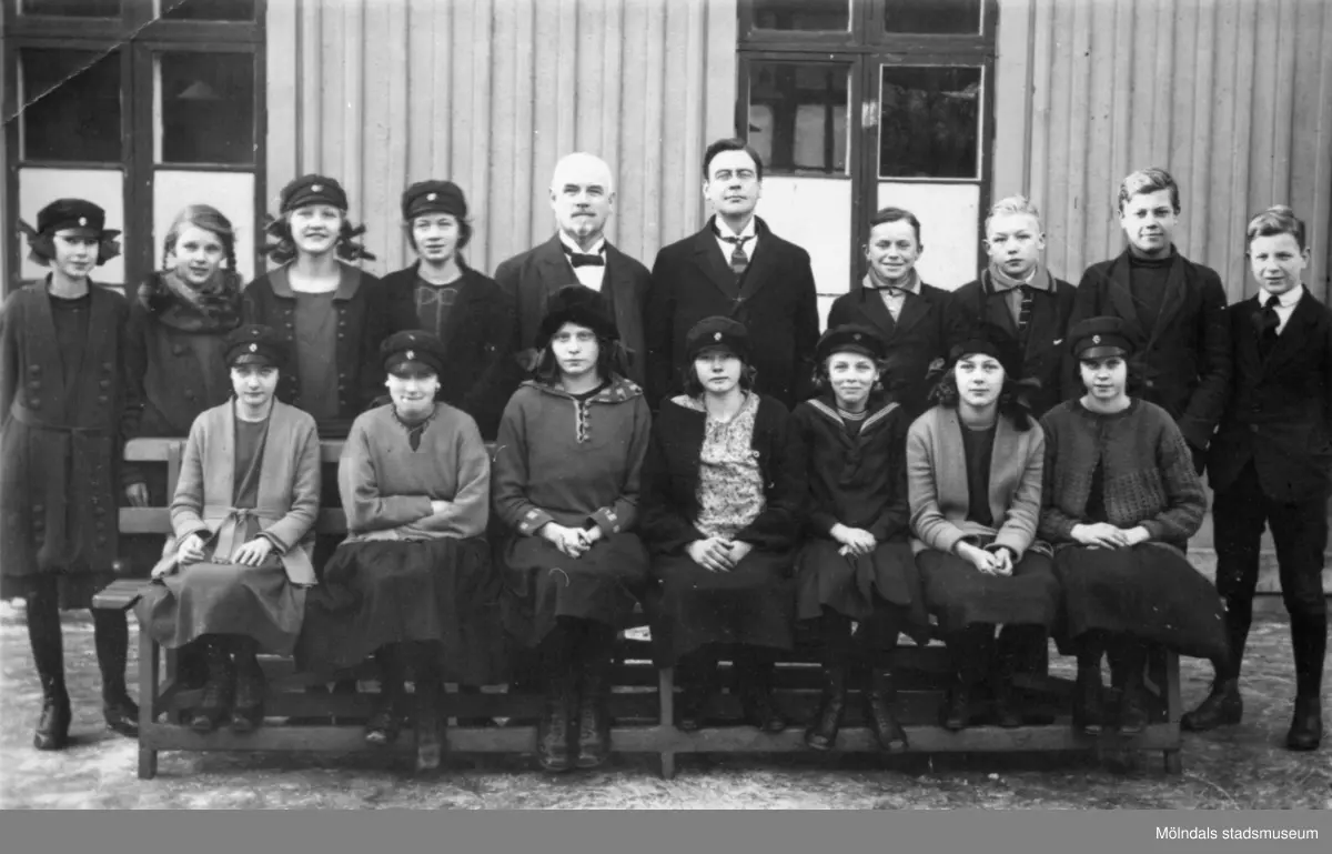 Exteriört foto av givaren Lilly Nygrens syster Signe Andreasson (född 1908) sitter i nedre raden till höger.