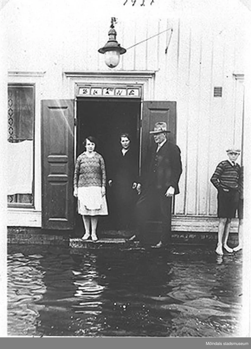 Översvämning vid Kafé Skåne, som då låg på Göteborgsvägen 3 i Mölndals bro, år 1927.