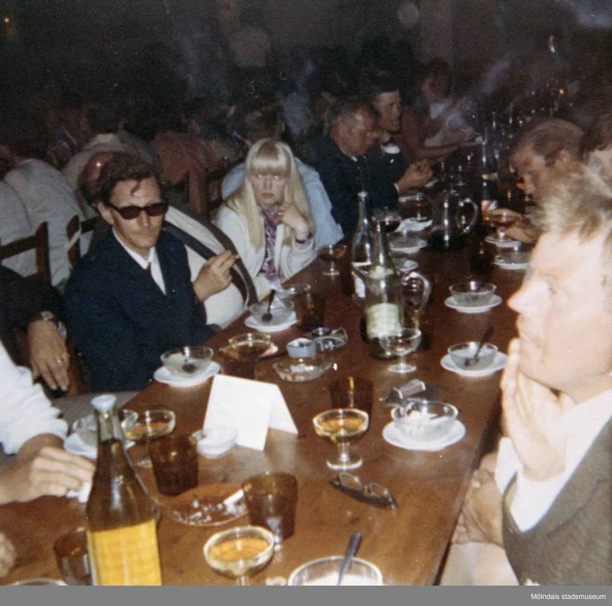 Restaurangbesök med elever, från Skolhemmet Stretered, som är på semester. 1970-tal.