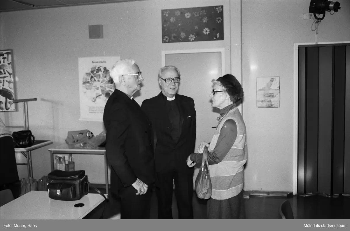 Gudstjänst i Rävekärrsskolan i samband med att man tar första spadtaget till Fågelbergskyrkan i Rävekärr, år 1984.