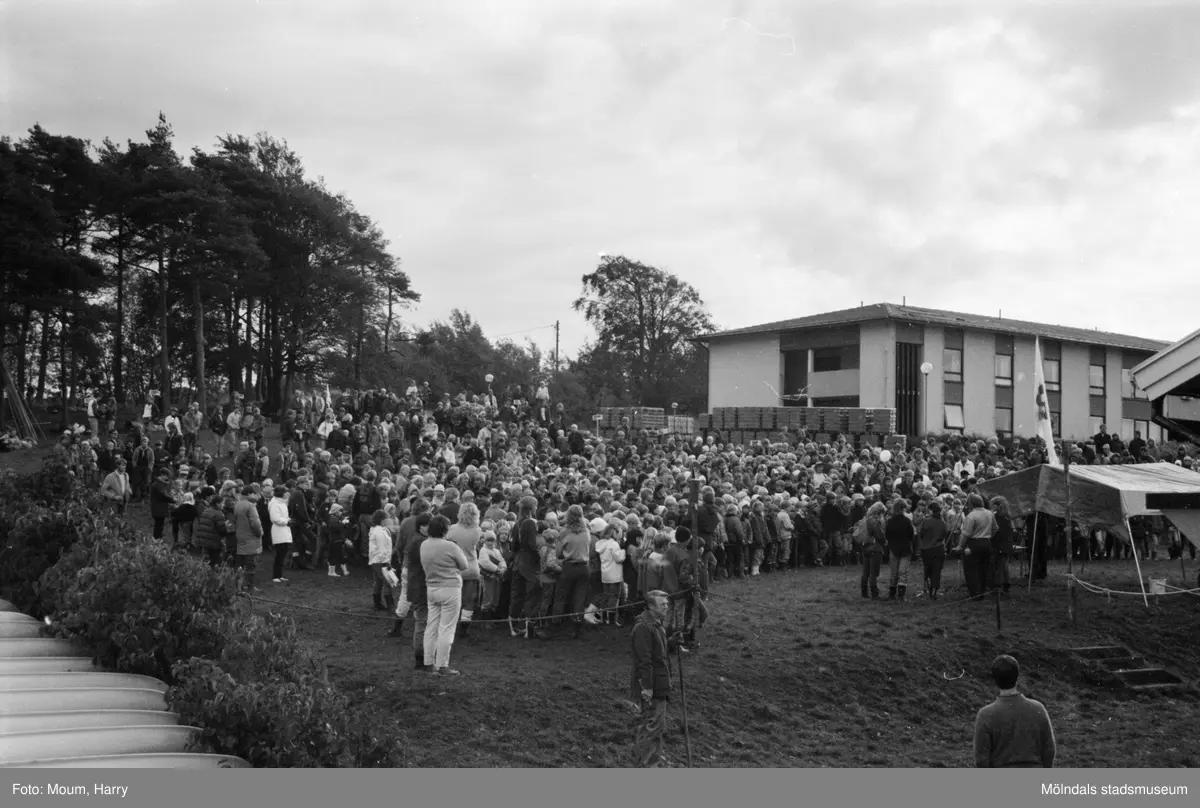 Annestorpsdalens scoutkår anordnar distriktstävlingar från scoutgården vid Konditorivägen i Lindome, år 1983. "1100 scouter hade mött upp för att vara med i tävlingarna."