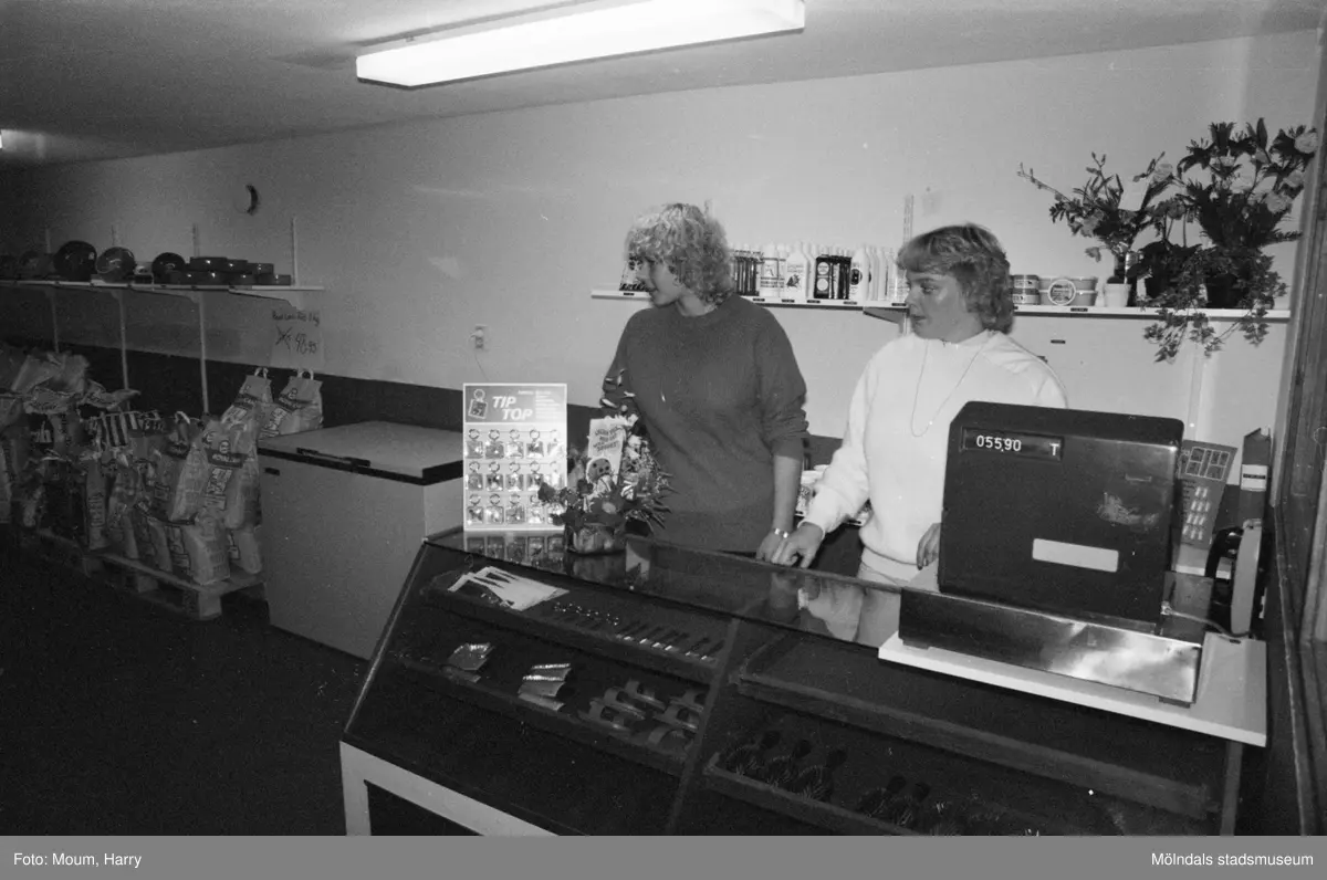 Annika Borg och Eva Nordin i deras nyöppnade hundbutik i Våmmedal, Kållered, år 1983.