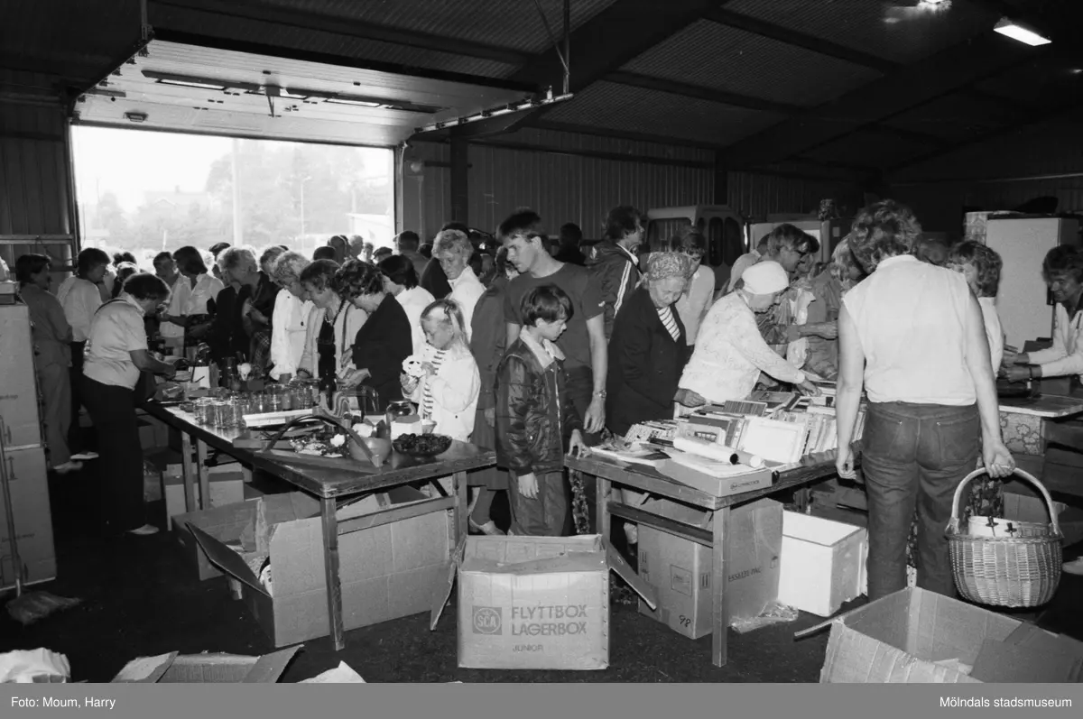 Titel: Lindome Lions Club anordnar loppmarknad vid Lindome station, år 1983. För mer information om bilden se under tilläggsinformation.