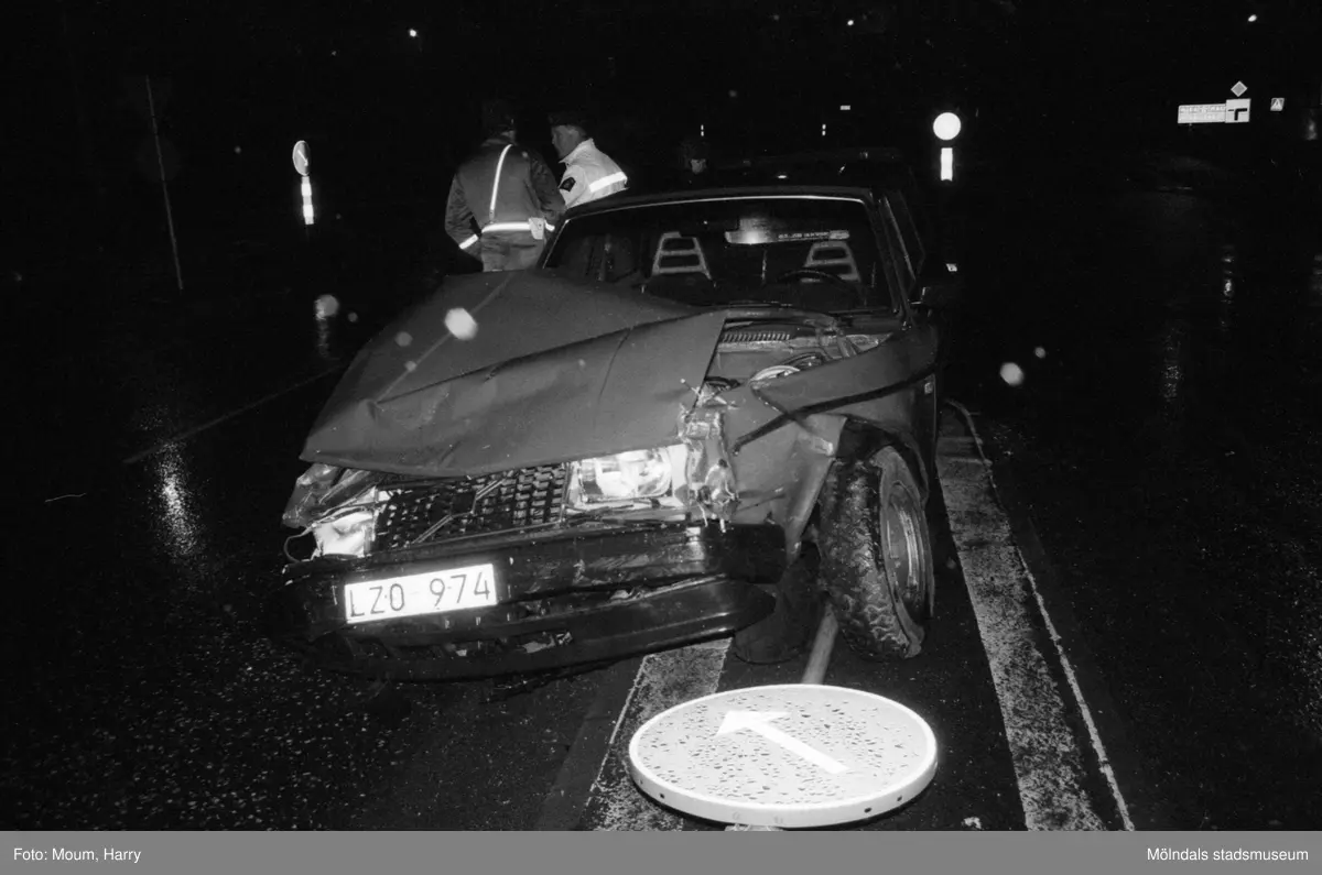 Bilolycka vid Ikeamotet i Kållered, år 1985. "En signalreglerad korsning skulle behövas vid Ikeamotet. Här en bild från en olycka i veckan."