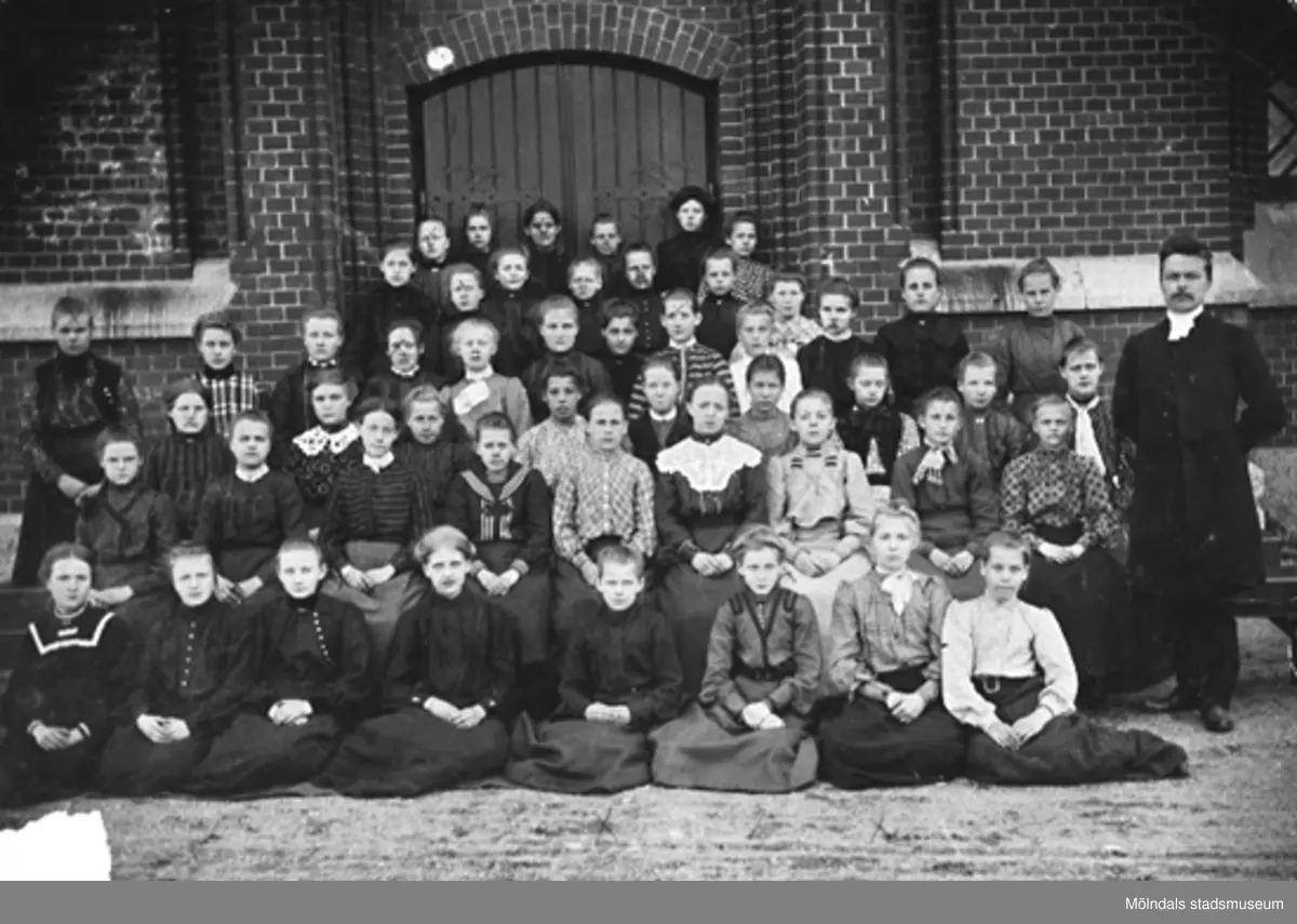 Konfirmation med kyrkoherde Axel Mauritz Sager (1867 - 1914), Fässbergs kyrka okänt årtal.