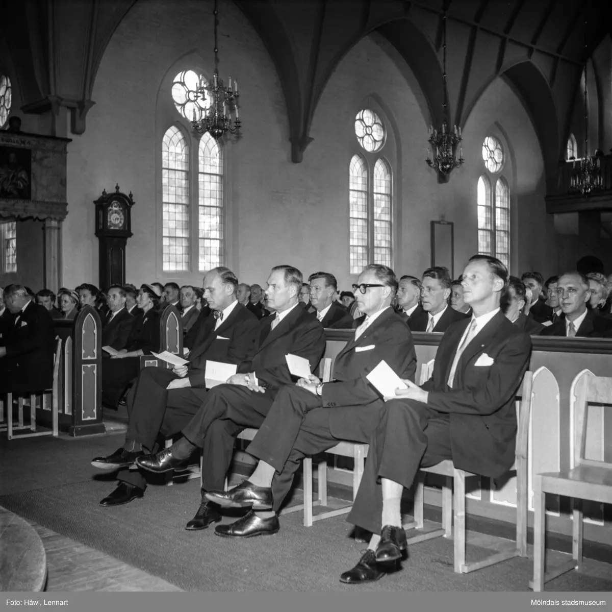 Titel: Utdelning av minnesgåvan vid pappersbruket Papyrus 60-årsjubileum. Mölndals kyrka, 24/9 1955.