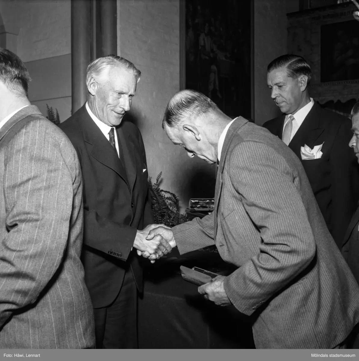 Titel: Utdelning av minnesgåvan vid pappersbruket Papyrus 60-årsjubileum. Mölndals kyrka, 24/9 1955.