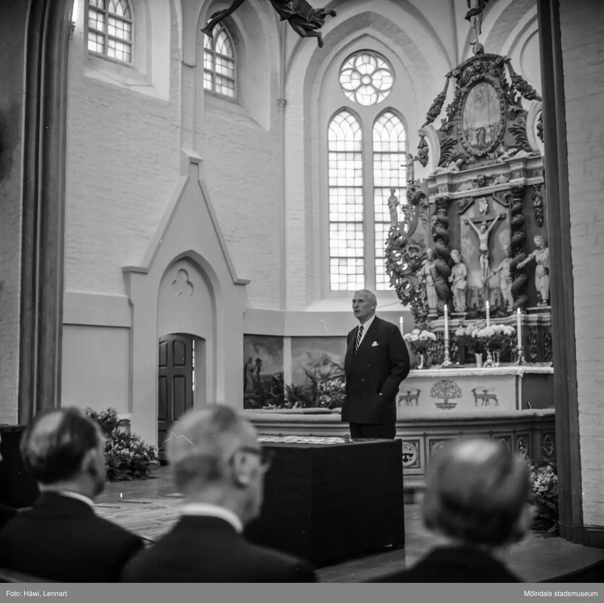 Utdelning av pappersbruket Papyrus minnesgåva 1965. Mölndals kyrka, 9/11 1965