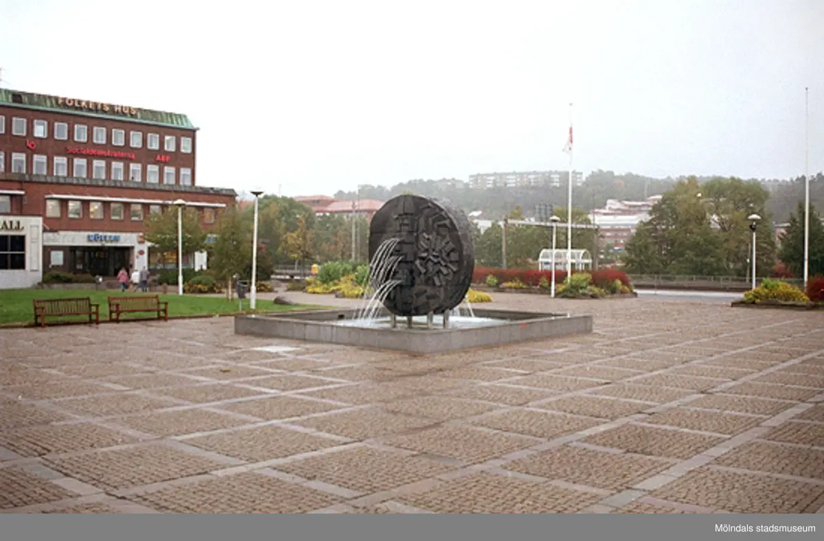 Platsen framför Folkets hus. Mölndalsbro i dag - ett skolpedagogiskt dokumentationsprojekt på Mölndals museum under oktober 1996. 1996_1190-1211 är gjorda av högstadieelever från Kvarnbyskolan 9D, grupp 4. Se även 1996_0913-0940.