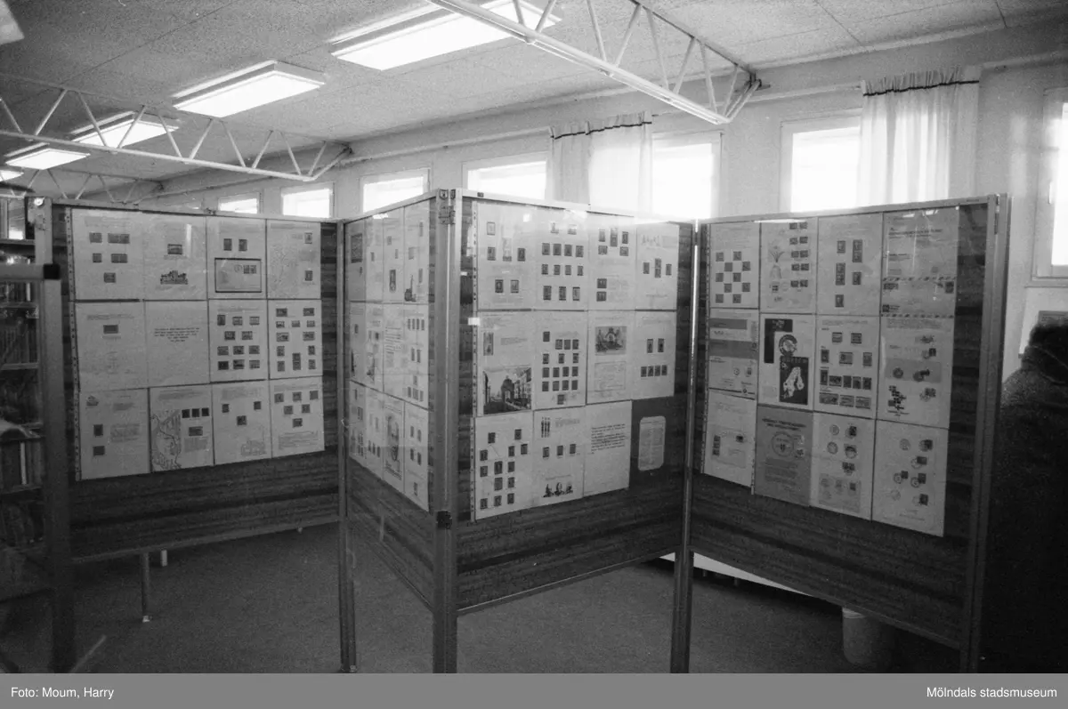 Titel: Frimärksutställning på Lindome bibliotek, år 1983. För mer information om bilden se under tilläggsinformation.