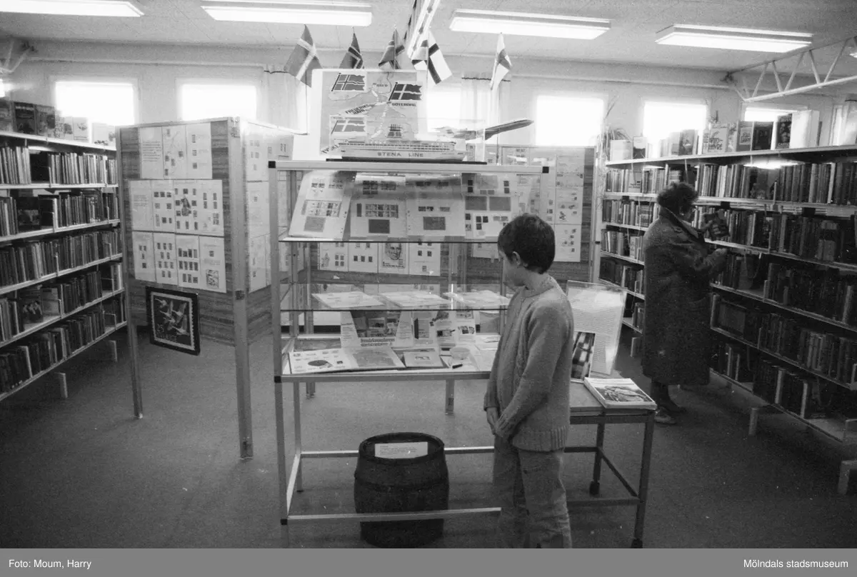 Frimärksutställning på Lindome bibliotek, år 1983.