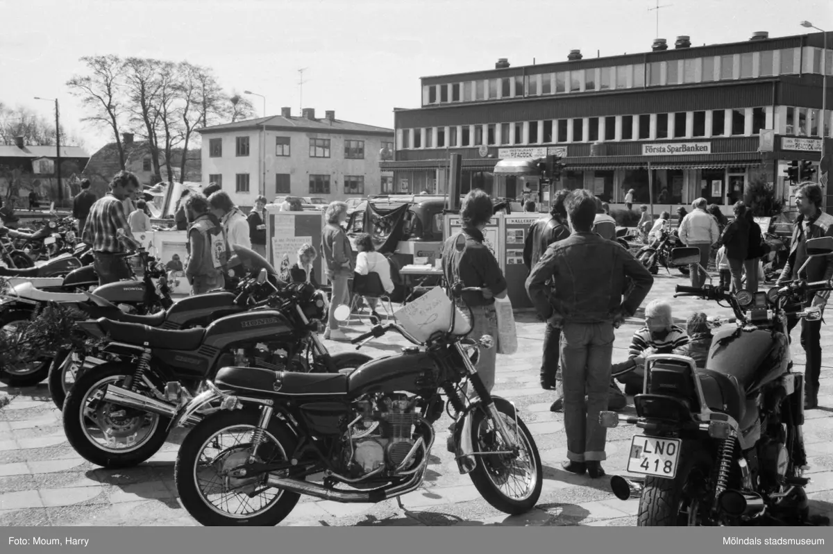 Kållereds Motorklubb visar upp motorcyklar i Kållereds centrum, år 1984.