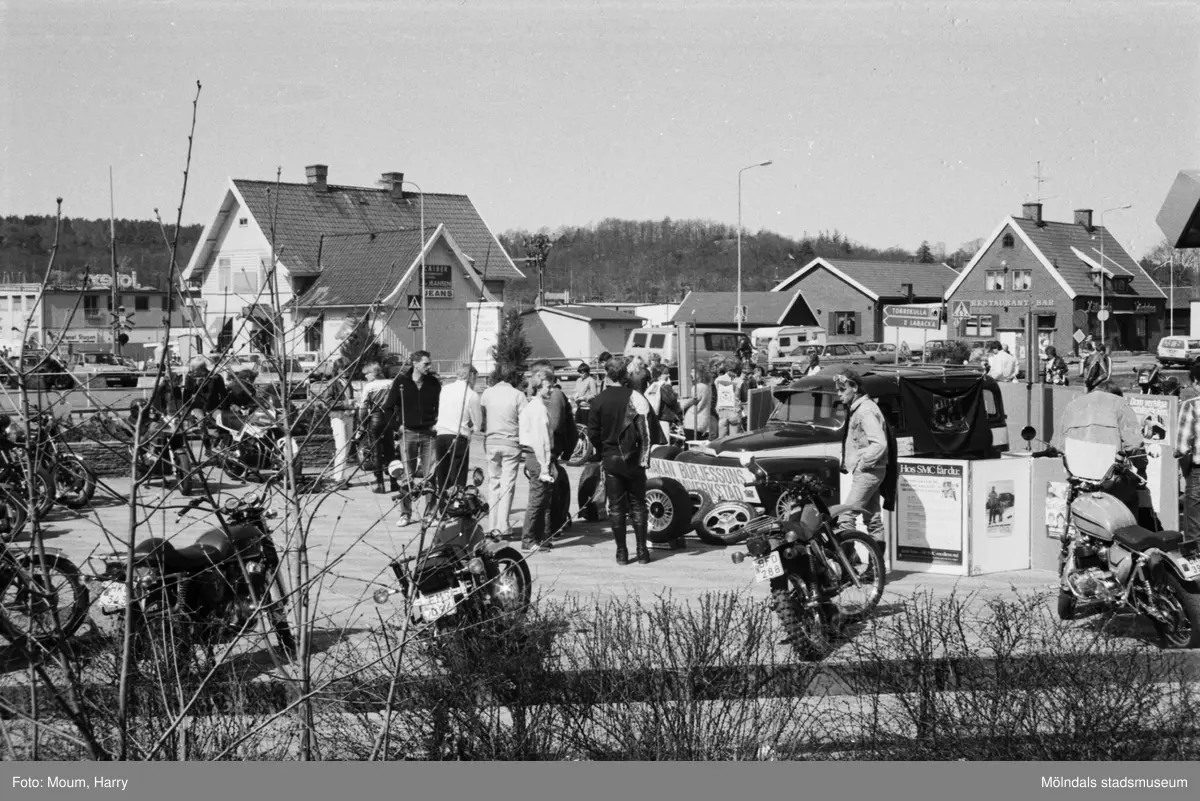 Kållereds Motorklubb visar upp motorcyklar i Kållereds centrum, år 1984.